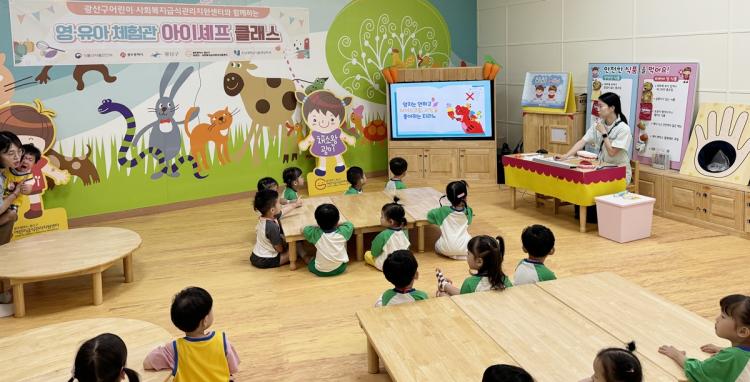 ±¤»ê±¸¾î¸°ÀÌ¡¤»çȸº¹Áö±Þ½Ä°ü¸®Áö¿ø¼¾ÅÍ´Â 10¿ù±îÁö ¼¾ÅÍ¿¡ µî·ÏµÈ ±â°üÀÇ ¿µ¡¤À¯¾ÆµéÀ» ´ë»óÀ¸·Î ¸ÅÁÖ ¼ö¿äÀÏ¿¡ ¡®¾ÆÀ̼ÎÇÁ Ŭ·¡½º¡¯ üÇè°ü ±³À°À» ½Ç½ÃÇÑ´Ù.