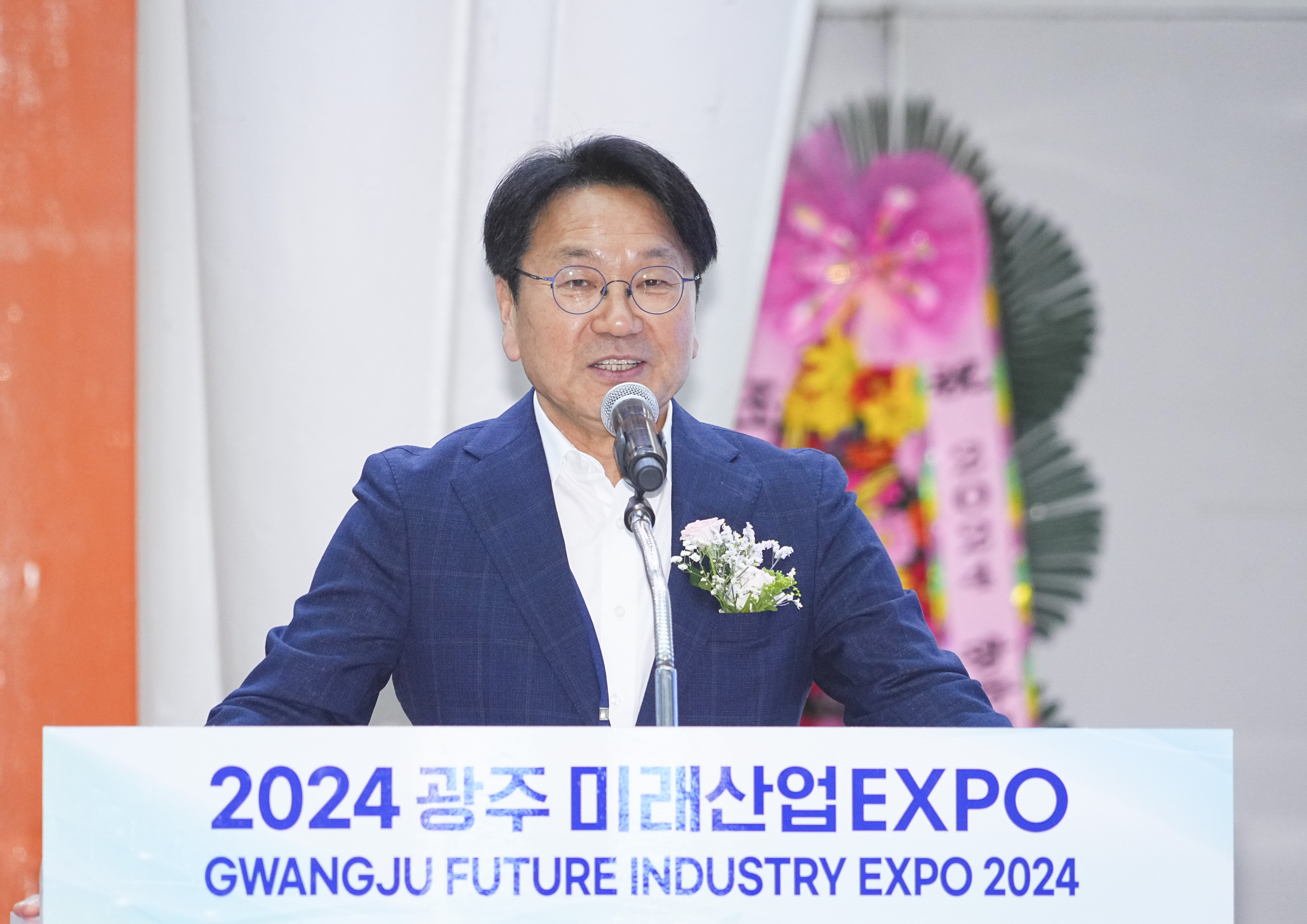 °±âÁ¤ ±¤ÁÖ½ÃÀåÀº ¡°¹Ì·¡Â÷¡¤µå·Ð¡¤»Ñ¸®¡¤°¡Àü¡¤·Îº¿»ê¾÷ÀÌ Çѵ¥ ¾î¿ì·¯Áö´Â ±¤Á̷ֹ¡»ê¾÷¿¢½ºÆ÷´Â ¸í½Ç°øÈ÷ È£³² ÃÖ´ë ±Ô¸ðÀÇ »ê¾÷ÀüÀÌ´Ù¡±¸ç ¡°¹Ì·¡»çȸÀÇ º¯È¿Í È帧À» ÇÑ´«¿¡ È®ÀÎÇÒ ±âȸÀÌÀÚ ±¹³»¿Í ÇØ¿Ü, Áß¾Ó°ú Áö¹æ, »ê¾÷°ú »ê¾÷, ½Ã¹Î°ú °úÇÐÀÌ °æ°è¸¦ ³Ñ¾î ¸¸³ª´Â ÀÚ¸®·Î, ±¤ÁÖ »ê¾÷À» Ű¿ï ¼ºÀ嵿·ÂÀÌ´Ù¡±°í °Á¶Çß´Ù.