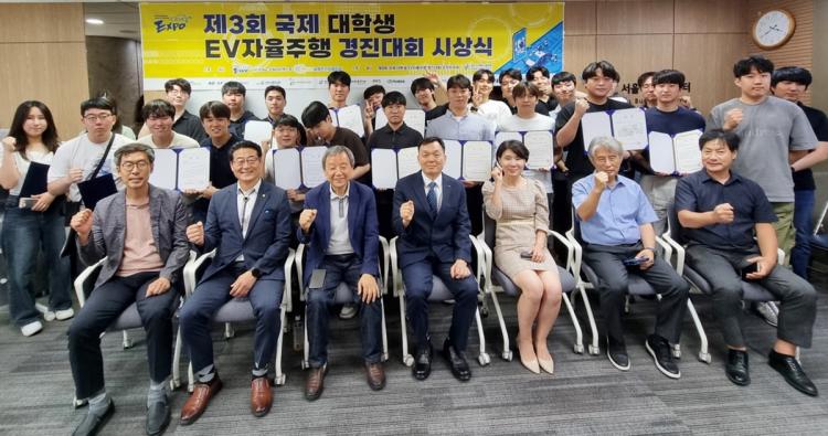 [ÅåÅå´º½º]È£³²´ëÇб³ ¹Ì·¡ÀÚµ¿Â÷°øÇкÎ(ÇкÎÀå ÀÌÁ¤È¯) ±³¼öÁø°ú ÀçÇлýµé·Î ±¸¼ºµÈ 3°³ ÆÀÀÌ ¡®2024 Á¦ 3ȸ ±¹Á¦ ´ëÇлý EV ÀÚÀ²ÁÖÇà °æÁø´ëȸ¡¯¿¡¼ Çõ½Å»ó µîÀ» ¼ö»óÇÏ´Â ¿µ¿¹¸¦ ¾È¾Ò´Ù.