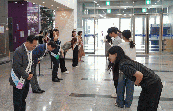 À̳¯ Çà»ç¿¡¼´Â ´ëÇ¥À̻縦 ºñ·ÔÇÑ ½Ç¡¤´ÜÀå±Þ ÀÌ»ó °£ºÎµéÀÌ Á÷¿øµé°ú ÇÔ²² Àλ縦 ³ª´©´Â ¡®Èñ¿ëÀÌ¿Í ÇÏÀÌÆÄÀ̺ꡯ ÇÁ·Î±×·¥ÀÌ ÁøÇàµÆ´Ù. Á÷¿øµéÀº 6°¡Áö Àλç¹ý Áß Çϳª¸¦ ¼±ÅÃÇØ ¼·Î ÀλçÇϸç À¯ÄèÇÏ°í µû¶æÇÑ ºÐÀ§±â¸¦ ¸¸µé¾ú´Ù.