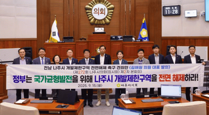 ¸¶Áö¸·À¸·Î ±èÇØ¿ø ÀÇ¿øÀº ¡°Áö¹æÀÇ »ýÁ¸°ú ±¹°¡ ±ÕÇü¹ßÀüÀ» À§ÇØ ´õ ÀÌ»ó ¹Ì·ê ¼ö ¾ø´Â °úÁ¦¡±¶ó¸ç, ¡°Á¤ºÎ´Â ÇüÆò¼º°ú Çö½Ç¼ºÀ» ¹Ý¿µÇØ Á¶¼ÓÈ÷ ³ªÁÖ½ÃÀÇ °³¹ßÁ¦Çѱ¸¿ª Àü¸é ÇØÁ¦¿¡ ³ª¼¾ß ÇÑ´Ù¡±°í ¹àÇû´Ù.