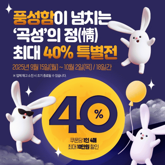 ÇÒÀÎ ÇýÅõµ dz¼ºÇÏ´Ù. Çà»ç ±â°£¿¡ °î¼º¸ô ȸ¿øÀº Àü »óǰ 10% ±âº» ÇÒÀο¡ ´õÇØ Ä«Å×°í¸®º° ÇÒÀÎǰ¸ñ¿¡ ÇÑÇÏ¿© ÃÖ´ë 40%±îÁö ÇÒÀÎµÈ °¡°ÝÀ¸·Î »óǰÀ» ±¸¸ÅÇÒ ¼ö ÀÖ´Ù.