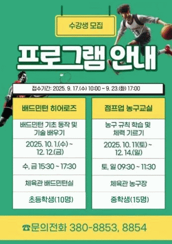 ¡®Á¡ÇÁ¾÷ ³ó±¸±³½Ç¡¯Àº ÁßÇлýÀ» ´ë»óÀ¸·Î ÁÖ¸» ¿ÀÀü 9½Ã 30ºÐºÎÅÍ 2½Ã°£µ¿¾È ¿î¿µµÈ´Ù.