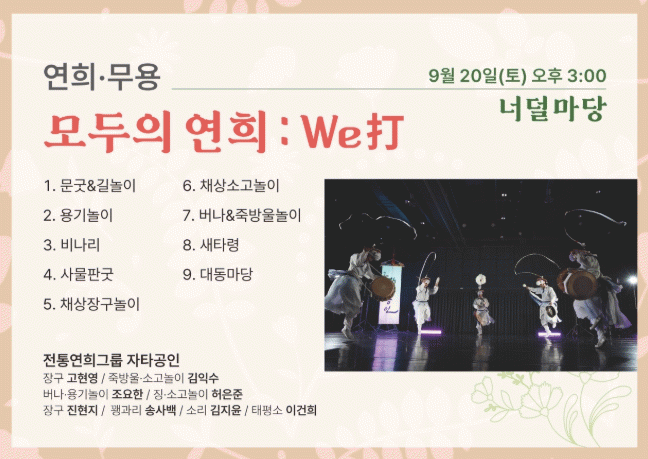 ÀüÅ뿬Èñ´Â °øµ¿Ã¼°¡ ÇÔ²² ¾î¿ï¸®¸ç ¼ÒÅëÇÏ´Â ´ëÇ¥Àû °ø¿¬¿¹¼ú·Î, Ÿ¾ÇÀÇ ¿ï¸² ¼Ó¿¡ Çϳª µÇ°í, ³îÀÌ¿Í Àç´ãÀ» ÅëÇØ Èñ·Î¾Ö¶ôÀ» ³ª´©¾î ¿Â ¿ì¸® ¹ÎÁ·ÀÇ Èï°ú ½Å¸íÀÌ Áý¾àµÈ ¹«´ë´Ù. À̹ø °ø¿¬Àº ÀüÅ뿬Èñ¸¦ Çö´ëÀû °¨°¢À¸·Î ÀçÇØ¼®ÇØ, °ü°´°ú ¿¹¼úÀÎÀÌ ÇÔ²² È£ÈíÇÏ´Â ¼ÒÅëÇü °ø¿¬À¸·Î ÁøÇàµÈ´Ù.