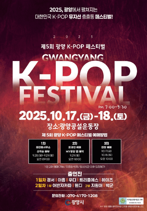 ½Ã´Â Á¦5ȸ ±¤¾ç K-POP Æä½ºÆ¼¹ú ÀÔÀå±ÇÀ» ¿À´Â 28ÀÏ~29ÀÏ À¾¸éµ¿ ¹èºÎ, 29ÀÏ ¡®MY±¤¾ç¡¯ ¾Û ¿Â¶óÀÎ ¹èºÎ, Çà»ç ´çÀÏ ÇöÀå ¹èºÎ±îÁö ÃÑ 3Â÷¿¡ °ÉÃÄ ¹èºÎÇÑ´Ù°í ¹àÇû´Ù.