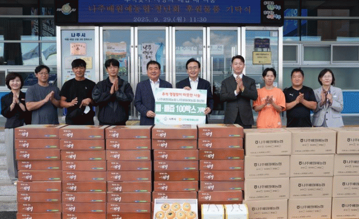 À̵¿Èñ ³ªÁÖ¹è¿ø¿¹³óÇù Á¶ÇÕÀåÀº ¡°¹ÎÁ·ÀÇ ´ë¸íÀýÀ» ¸Â¾Æ ³ªÁÖÀÇ ´ëÇ¥ Ư»ê¹°ÀÌÀÚ Á¦¼ö¿ëǰÀÎ ¹è¿Í ¹èÁóÀ» ÁغñÇß´Ù¡±¸ç ¡°¿ì¸® Áö¿ªÀÇ ´ÙÀڳడÁ¤ÀÌ µû¶æÇÑ ¸íÀýÀ» º¸³»´Â µ¥ µµ¿òÀÌ µÇ±æ ¹Ù¶õ´Ù¡±°í ÀüÇß´Ù.