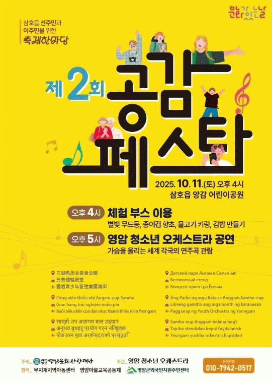 À̹ø Çà»ç´Â »ê¾÷´ÜÁö ³» ´Ù¹®È°¡Á¤ ¹× ÀÌÁֹεé°úÀÇ ¹®È¼ÒÅëÀ» ÅëÇØ Á¤¼Àû À§·Î¿Í »îÀÇ È°·ÂÀ» Áö¿øÇϰí, ¿µ¾Ï±º û¼Ò³âÀÇ ¿¬ÁÖ È°µ¿ ¿ª·® °È ¹× Áö¿ª¹®È¿¹¼ú Ȱ¼ºÈ¸¦ ¸ñÇ¥·Î Çϰí ÀÖ´Ù.
