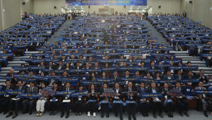 À̳¯ ¼±Æ÷½Ä¿¡´Â À±º´Å ³ªÁÖ½ÃÀå, ½ÅÁ¤ÈÆ ±¹È¸ÀÇ¿ø, ±è´ëÁß Àü³²µµ±³À°°¨, ÀÌÀç³² ³ªÁÖ½ÃÀÇȸ ÀÇÀåÀ» ºñ·ÔÇØ Çõ½Åµµ½Ã ÀÌÀü°ø°ø±â°ü ´ëÇ¥, ±³À° °ü°èÀÚ, Çкθð, ½Ã¹Î µî 1000¿© ¸íÀÌ Âü¼®ÇØ ³ªÁÖ±³À°ÀÇ »õ·Î¿î Ãâ¹ßÀ» ÇÔ²¾ Çß´Ù.