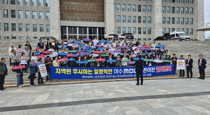¿©¼ö½ÃÀÇȸ ¹éÀμ÷ ÀÇÀå µî ¿©¼öMBC ¼øÃµÀÌÀü ¹Ý´ë ¹ü½Ã¹Î´ëÃ¥À§¿øÈ¸¿Í ¿©¼ö½Ã¹Î 200¿© ¸íÀº 14ÀÏ ±¹È¸¿Í MBC¹®È¹æ¼ÛÀ» Ç×ÀÇ ¹æ¹®ÇØ ±Ôź ´ëȸ¸¦ °¡Á³´Ù.