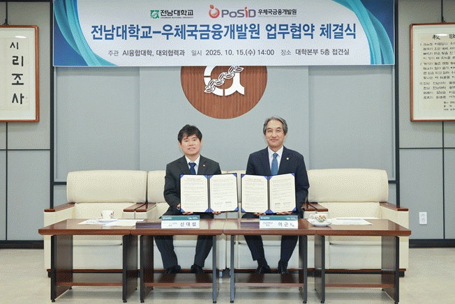 Àü³²´ë´Â 10¿ù 15ÀÏ ´ëÇк»ºÎ 5Ãþ Á¢°ß½Ç¿¡¼ ¿ìü±¹±ÝÀ¶°³¹ß¿ø°ú ¡®Áö¿ª»ó»ý ¹× AIÀ¶ÇÕ »êÇÐÇù·Â ÁõÁøÀ» À§ÇÑ ¾÷¹«Çù¾à(MOU)¡¯À» ü°áÇß´Ù°í 16ÀÏ ¹àÇû´Ù.