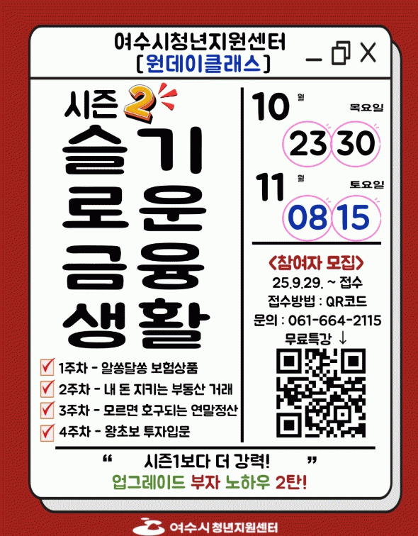 °ÀÇ´Â ¡ã10¿ù 23ÀÏ ¡®¾Ë½ö´Þ½ö º¸Çè»óǰ ÀÌÇØ¡¯ ¡ã10¿ù 30ÀÏ ¡®³» µ· ÁöŰ´Â ºÎµ¿»ê °Å·¡ »ó½Ä¡¯ ¡ã11¿ù 8ÀÏ ¡®¸ð¸£¸é ¼ÕÇØ º¸´Â ¿¬¸»Á¤»ê ½Ç¹«¡¯ ¡ã11¿ù 15ÀÏ ¡®¿ÕÃʺ¸ ÅõÀÚ ÀÔ¹®¡¯ µî ½Ç»ýȰ°ú ¹ÐÁ¢ÇÑ ÁÖÁ¦·Î ü°èÀûÀ¸·Î ÁøÇàµÈ´Ù.