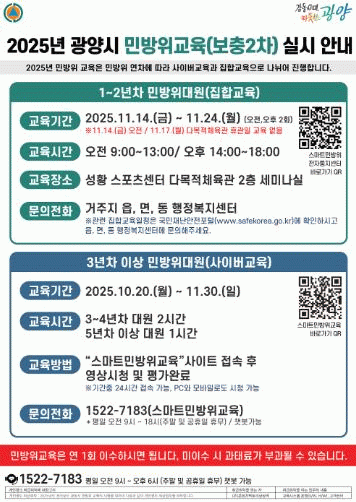¹Î¹æÀ§ ±³À°Àº ÁÖ¼ÒÁö¿Í °ü°è¾øÀÌ Àü±¹ ¾îµð¼³ª À̼öÇÒ ¼ö ÀÖÀ¸¸ç, ÁöÁ¤µÈ ÀϽÿ¡ Âü¼®ÀÌ ¾î·Á¿î ´ë¿øÀº ±¹¹ÎÀç³¾ÈÀüÆ÷ÅÐ µîÀ» ÅëÇØ ±³À° ÀÏÁ¤À» È®ÀÎÇÑ µÚ Ÿ Áö¿ª ±³À°¿¡ Âü¿©ÇÒ ¼ö ÀÖ´Ù.