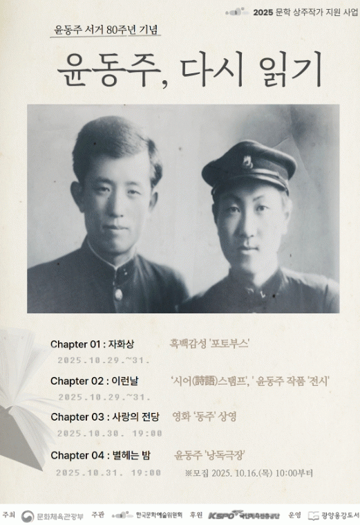 À̹ø Çà»ç´Â 2025³â ¹®ÇлóÁÖÀÛ°¡Áö¿ø»ç¾÷ÀÇ ÀÏȯÀ¸·Î, À±µ¿ÁÖ ½ÃÀΰú ±¹¹®ÇÐÀÚ Á¤º´¿í ¼±»ýÀÇ Àο¬À» °£Á÷ÇÑ ±¤¾ç¿¡¼ ½Ã¹ÎµéÀÌ ¹®ÇÐÀ» º¸´Ù °¡±õ°Ô üÇèÇϰí Áö¿ªÀÇ ¹®ÈÀû Á¤Ã¼¼ºÀ» ½ÉÈÇÒ ¼ö ÀÖµµ·Ï ±âȹµÆ´Ù.