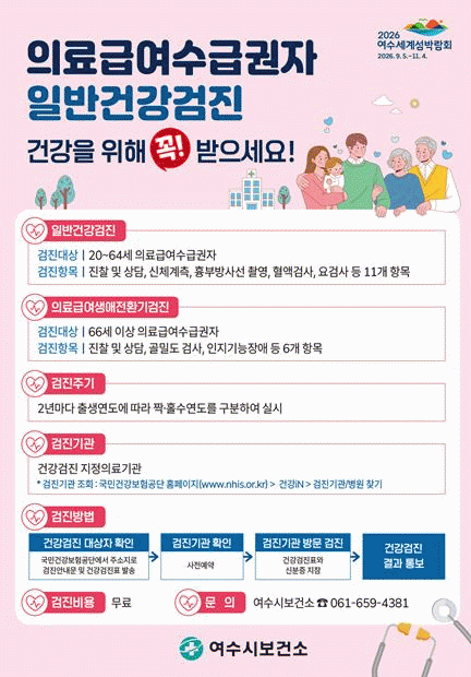 ¿ÃÇØ´Â Ȧ¼ö³âµµ Ãâ»ýÀÚ°¡ ´ë»óÀÌ¸ç ½Åü°èÃø¡¤Ç÷¾×°Ë»ç¡¤±¸°°ËÁø µî Ç׸ñÀ» Àü¾× ¹«·á·Î ¹ÞÀ» ¼ö ÀÖ´Ù.