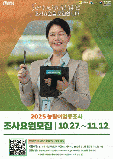 À̱¤Áø ±âȹ½ÇÀåÀº¡°5³â¿¡ ÇÑ ¹ø ÁøÇàµÇ´Â ³ó¸²¾î¾÷ÃÑÁ¶»ç´Â ³ó¸²¾î°¡ÀÇ ±Ô¸ð, ºÐÆ÷, ±¸Á¶ ¹× °æ¿µ»óŸ¦ ÆÄ¾ÇÇÏ¿© ³ó¸²¾î¾÷ ÁÖ¿ä Á¤Ã¥ ¼ö¸³ÀÇ ±âÃÊÀÚ·á°¡ µÇ´Â Áß¿äÇÑ Á¶»ç¡±¶ó¸ç, ¡°Ã¥ÀÓ°¨°ú ¼º½ÇÇÑ Á¶»ç¿ä¿ø ¸ðÁýÀ» À§ÇÑ ±º¹ÎµéÀÇ °ü½É°ú Âü¿©¸¦ ±â´ëÇÑ´Ù¡±°í ¹àÇû´Ù.