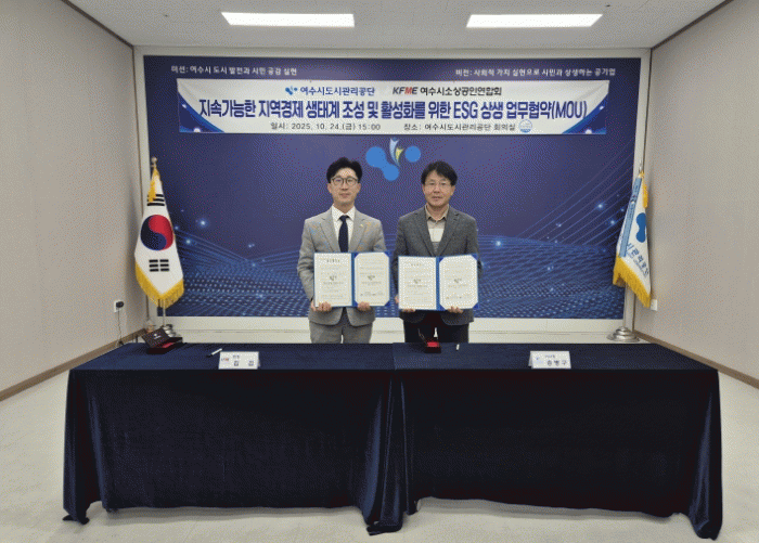 ¿©¼ö½Ãµµ½Ã°ü¸®°ø´Ü ÀÌ»çÀåÀº ¡°¿©¼ö½Ã ¼Ò»ó°øÀÎ ¿¬ÇÕȸ¿Í À̹ø Çù¾à ü°á·Î Áö¿ª ¼Ò»ó°øÀεé°ú ÇÔ²² ¹ßÀüÇØ ³ª°¥ ¼ö ÀÖ´Â »ó»ý °æ¿µ ü°è¸¦ ±¸ÃàÇϰí, Áö¼Ó°¡´ÉÇÑ ESG °æ¿µ ¹× °æÁ¦ Ȱ¼ºÈ ÃßÁøÀ» À§ÇØ ³ë·ÂÇϰڴÙ.¡±°í ¸»Çß´Ù.