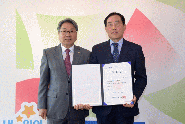 °±âÁ¤ ±¤ÁÖ±¤¿ª½ÃÀåÀº 28ÀÏ ½Ãû Á¢°ß½Ç¿¡¼ ÀÌÃá¹® ½ÅÀÓ Á¤¹«Æ¯º°º¸Á°ü¿¡°Ô ÀÓ¸íÀåÀ» ¼ö¿©Çß´Ù.
