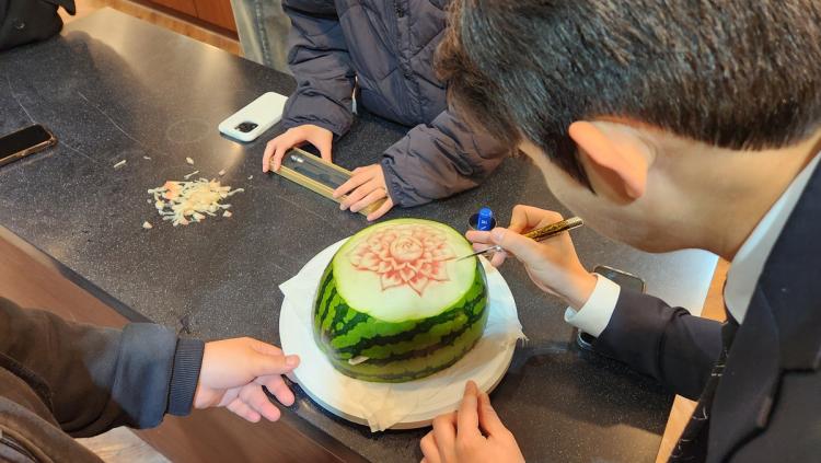 RISE »ç¾÷´Ü(´ÜÀå Á¤Á¦Æò)ÀÌ ÁÖ°üÇÏ´Â À̹ø ÇÁ·Î±×·¥Àº °úÀÏÀ» Ȱ¿ëÇÑ ¿¹¼úÀû Á¶°¢ ±â¹ýÀÎ °úÀÏÄ«ºù(Fruit Carving)ÀÇ ½Ç¹« ¿ª·® ¹è¾ç¿¡ ÁßÁ¡À» µÎ°í, °úÀÏÀ» Ȱ¿ëÇÑ µ¥ÄÚ·¹À̼ǰú Å×À̺í Àå½Ä ±â¹ý, Ç÷¹ÀÌÆÃ ±¸¼ºÀ» ÇнÀÇß´Ù. ƯÈ÷ Ä«ºù¿ë °úµµÀÇ ¿Ã¹Ù¸¥ »ç¿ë¹ý°ú Çöó¿ö ÆÐÅÏ Á¶°¢ ½Ç½ÀÀÌ º´ÇàµÆ°í, º¹ÀâÇÑ µµ¸é µðÀÚÀÎÀ» ¹ÙÅÁÀ¸·Î °³º° Á¶°¢À» ¿Ï¼ºÇغ¸´Â ÁýÁß ±³À°ÀÌ ÁøÇàµÆ´Ù.