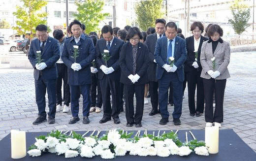 ³²±¸ÀÇȸ ÀÇ¿øµéÀº Ã߸ð½ÄÀ» ÅëÇØ ¡°±×³¯ÀÇ ¾ÆÇÄÀ» ÀØÁö ¾Ê°í, ÀÌÅ¿ø Âü»ç Èñ»ýÀÚµéÀÇ ³ÌÀ» ±â¸®¸ç À¯°¡Á·µéÀÇ ½½ÇÄÀ» ÇÔ²² ³ª´©°Ú´Ù¡±°í ¶æÀ» ÀüÇß´Ù.