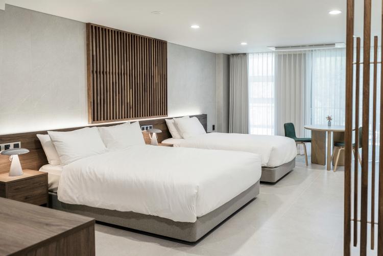 ¡®MNU STAY¡¯´Â ±Û·ÎÄôëÇÐ Ä·ÆÛ½º ¸í¼ÒÈ »ç¾÷ÀÇ ÀÏȯÀ¸·Î Á¶¼ºµÈ ¼÷¹ÚÇü º¹ÇÕ°ø°£À¸·Î, ÃÑ 20½Ç ±Ô¸ðÀÇ °´½Ç¿¡´Â ¹«ÀΠŰ¿À½ºÅ© ÀÔ¡¤Åð½Ç ½Ã½ºÅÛ, ÀÚµ¿ ³Ã³¹æ, Ãʰí¼Ó ÀÎÅͳÝ, IPTV µîÀ» °®Ãá ½º¸¶Æ® ü·ù ȯ°æÀÌ ¸¶·ÃµÇ¾î ÀÖ´Ù.