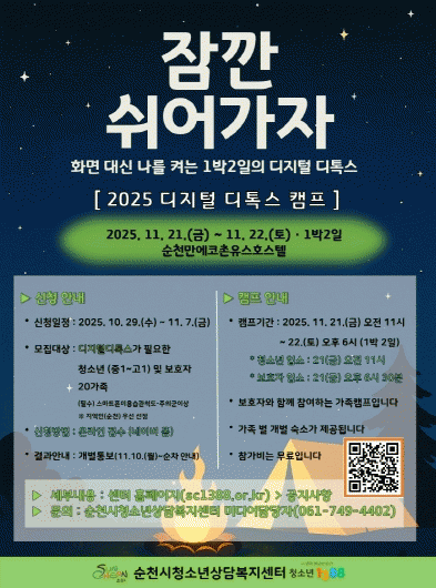 Âü°¡ ½ÅûÀº ¿À´Â 11¿ù 7ÀϱîÁö ¿Â¶óÀÎÀ¸·Î °¡´ÉÇϸç, ÀÚ¼¼ÇÑ ³»¿ëÀº ¼øÃµ½Ãû¼Ò³â»ó´ãº¹Áö¼¾ÅÍ ´©¸®Áý ¶Ç´Â ÀüÈ·Î ¹®ÀÇÇÏ¸é µÈ´Ù.