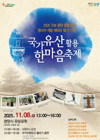 ±è¸í´ö ¹®È¿¹¼ú°úÀåÀº ¡°À̹ø ±¹°¡À¯»ê Ȱ¿ë ÇѸ¶À½ ÃàÁ¦´Â ½Ã¹Î°ú ÇÔ²² ±¤¾çÀÇ ±¹°¡À¯»êÀÌ Áö´Ñ °¡Ä¡¸¦ µÇ»õ±â°í, ½Ö»çÀÚ ¼®µî Á¦ÀÚ¸® ã±âÀÇ Àǹ̸¦ °øÀ¯ÇÏ´Â ¶æ±íÀº ÀÚ¸®¡±¶ó¸ç ¡°¾ÕÀ¸·Îµµ Áö¿ªÀÇ ¹®ÈÀ¯»êÀ» Ȱ¿ëÇÑ ´Ù¾çÇÑ ÇÁ·Î±×·¥À» ÅëÇØ ±¤¾çÀÇ ¿ª»ç¿Í ¹®È¸¦ ³Î¸® ¾Ë¸®°Ú´Ù¡±°í ¸»Çß´Ù.