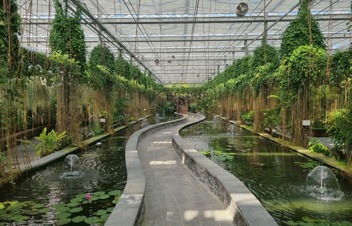 ÅͳÎÀ» Áö³ª¸é õÁ¤¿¡¼ ±æ°Ô ´Ã¾îÁø ½Ã¼½º³ëµµ»ç¿Í Æ¿¶õµå½Ã¾Æ°¡ °ø°£À» °¡µæ ¸Þ¿ì¸ç ÀÚ¿¬ÀÇ »ý¸í·Â°ú »ýµ¿°¨À» ÀüÇϰí, °ü¶÷ µ¿¼± Áß¾Ó¿¡´Â È·ÁÇÏ°Ô ¸¸°³ÇÑ ¹Ý´Ù(Vanda)°¡ ¸ùȯÀûÀÎ »ö°¨À» ´õÇØ Á¤±ÛÀÇ ºÐÀ§±â¸¦ ÇÑÃþ ±í°Ô ¸¸µç´Ù.