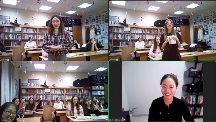 11¿ù 3ÀÏ '·¯½Ã¾Æ Ä«ÀÜ¿¬¹æ´ëÇÐ'°úÀÇ °£´ãȸ¿¡´Â ±è¼Ò¿µ °»ç(Çѱ¹¾î±³À°¿ø), ¼Õ¼Ò¹Ì¾Æ ±³¼ö(Çѱ¹¿ª»çÇаú) ¹× ÇлýµéÀÌ Âü¿©ÇßÀ¸¸ç, ÇлýµéÀº 'Çѱ¹¾î¿Í Çѱ¹ »çȸ¹®ÈÀÇ ÀÌÇØ(VOD)' ¼ö¾÷¿¡¼ ¹è¿î ´Ù¾çÇÑ ¹®È¿¡ ´ëÇØ ¹ßÇ¥Çß´Ù.