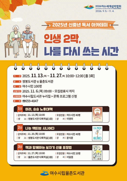 ¿©¼ö½Ã °ü°èÀÚ´Â ¡°½ÅÁß³âµéÀÌ µµ¼°ü¿¡¼ À¯ÀÍÇÑ Á¤º¸¸¦ ¾ò°í Àλý ÈĹݱ⸦ »õ·Ó°Ô ÁغñÇÏ´Â ±âȸ°¡ µÇ±æ ¹Ù¶õ´Ù¡±¸ç ¡°¾ÕÀ¸·Îµµ ½Ã¹ÎÀÇ Æò»ýÇнÀ°ú µ¶¼¹®È Ȱ¼ºÈ¸¦ À§ÇØ ´Ù¾çÇÑ ÇÁ·Î±×·¥À» ¿î¿µÇϰڴ١±°í ¸»Çß´Ù.