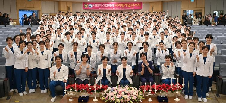 ³ªÀÌÆÃ°ÔÀÏ ¼±¼½ÄÀº ÀÓ»ó ½Ç½ÀÀ» ¾ÕµÐ °£È£Çаú 2Çгâ ÇлýµéÀÌ °£È£ Àü¹®Á÷ÀÇ ¼þ°íÇÑ Á¤½ÅÀ» »ó¡ÇÏ´Â ÃкÒÀ» ¹àÇô µé°í, ³ªÀÌÆÃ°ÔÀÏÀÇ Èñ»ý°ú ºÀ»ç Á¤½ÅÀ» µÇ»õ±â¸ç ÀηùÀÇ °Ç°°ú ¾È³çÀ» À§ÇØ Ã¥ÀÓÀ» ´ÙÇÒ °ÍÀ» ´ÙÁüÇÏ´Â ÀǹÌÀÖ°í ÀüÅëÀûÀÎ Çà»çÀÌ´Ù.