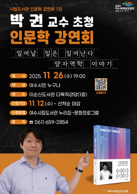 À̹ø °¿¬Àº ¡®ÀϾ ÀÏÀº ÀϾ٠¾çÀÚ¿ªÇÐ À̾߱⡯¸¦ ÁÖÁ¦·Î, ¾çÀÚ¿ªÇÐ ¿ø¸®¸¦ ÅëÇØ ¿ìÁÖ¿Í Àΰ£ÀÇ Á¸Àç¿¡ ´ëÇÑ ¼³¸í°ú »îÀÇ Åµµ¿¡ °üÇØ ±íÀº ÅëÂûÀ» Á¦½ÃÇÒ ¿¹Á¤ÀÌ´Ù.