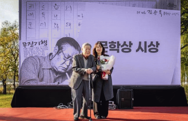 ¶ÇÇÑ, ±è½Â¿Á ÀÛ°¡°¡ Á÷Á¢ ´ë»ó ¼ö»óÀÚÀÎ ÃÖÀº¹Ì ¼Ò¼³°¡¿¡°Ô »óÀ» ¼ö¿©ÇÏ¸ç ½Ã»ó½ÄÀÇ Àǹ̸¦ ´õ¿í ³ô¿´´Ù.