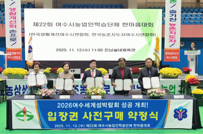 À̳¯ Çà»ç¿¡´Â Çѱ¹³óÃÌÁöµµÀÚÀü¶ó³²µµ¿¬ÇÕȸ¿Í Çѱ¹»ýȰ°³¼±Àü¶ó³²µµ¿¬ÇÕȸ°¡ ÇÔ²² Âü¿©ÇØ ÃÑ 4°³ ´Üü°¡ 2,500¸¸ ¿ø ±Ô¸ðÀÇ 2026¿©¼ö¼¼°è¼¶¹Ú¶÷ȸ ÀÔÀå±Ç ±¸¸Å ¾àÁ¤½ÄÀ» ÁøÇàÇÏ¸ç ¹Ú¶÷ȸ ¼º°ø°³ÃÖ ¿°¿ø¿¡ ¶æÀ» ¸ð¾Ò´Ù.