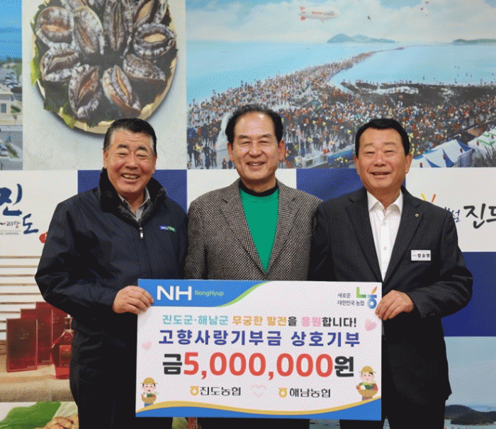 Áøµµ³óÇùÀº Áö³ ÇØ³²¹Ì³²ÃàÁ¦¿¡¼ ÇØ³²±º¿¡ °íÇâ»ç¶û±âºÎ±Ý 500¸¸ ¿øÀ» ±âºÎÇßÀ¸¸ç, À̹ø¿¡´Â ÇØ³²³óÇùÀÌ Áøµµ±º¿¡ °íÇâ»ç¶û±âºÎ±Ý 500¸¸ ¿øÀ» Àü´ÞÇÏ¸ç ¼·Î¸¦ ÀÀ¿øÇÏ´Â µû¶æÇÑ ¸¶À½°ú Áö¿ª »ó»ýÀÇ Àǹ̸¦ ³ª´³´Ù.