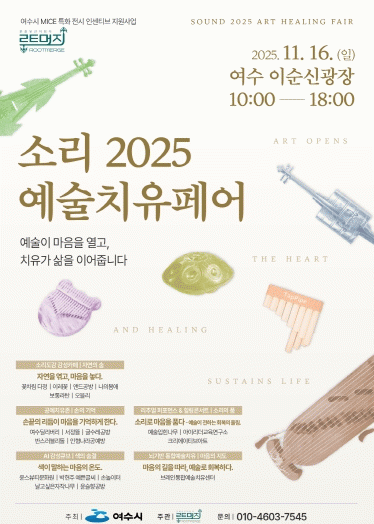 ±è»ó¿í ¿©¼ö½Ã °ü±¤°úÀåÀº ¡°À̹ø ¡®¼Ò¸® 2025 ¿¹¼úÄ¡À¯Æä¾î¡¯´Â ½Ã¹ÎÀÇ ½É¸®Àû ¾ÈÁ¤°ú ¹®È ÇâÀ¯ ±âȸ È®´ë´Â ¹°·Ð ¿©¼ö ¸¶À̽º ƯÈÀü½Ã»ç¾÷ÀÇ ¹æÇâÀÎ Áö¿ª ¿¹¼ú ÄÜÅÙÃ÷ À°¼º°ú µµ½É ȸº¹·Â °È¿¡µµ ºÎÇÕÇÑ´Ù¡±¸ç ¡°¾ÕÀ¸·Îµµ ´Ù¾çÇÑ ¸¶À̽ºÇü Ä¡À¯ ÄÜÅÙÃ÷ ¹ß±¼°ú Áö¿øÀ» À̾°Ú´Ù¡±°í ¸»Çß´Ù.