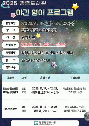 ¼ö° ½ÅûÀº ¿À´Â 11¿ù 17ÀÏ ¿ÀÀü±îÁö ±¤¾ç½Ã¸³µµ¼°ü ´©¸®Áý¿¡¼ °¡´ÉÇÏ´Ù.