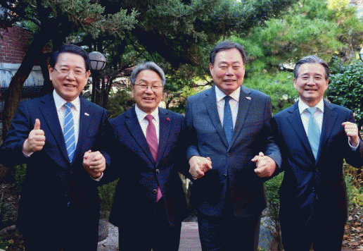 ±è»ê ±º¼ö´Â 19ÀÏ ¼¿ï¿¡¼ ±è¿ë¹ü ´ëÅë·É½Ç Á¤Ã¥½ÇÀåÀÇ ÁÖÀç·Î °±âÁ¤ ±¤ÁÖ½ÃÀå, ±è¿µ·Ï Àü³²Áö»ç°¡ ÷¼®ÇÑ 4ÀÚ »çÀüÇùÀǸ¦ ¸¶Ä£ µÚ À̰°ÀÌ ¹àÇû´Ù.