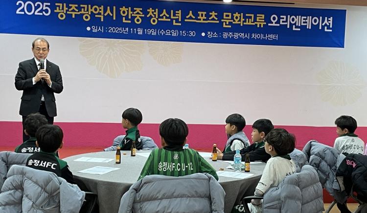 ±¤ÁÖÂ÷À̳ª¼¾ÅÍ Á¤Á¾ÀÏ ¼¾ÅÍÀåÀº ¡°À̹ø ±³·ù´Â ½ºÆ÷Ã÷¸¦ ÅëÇØ ÇÑ¡¤Áß Ã»¼Ò³âÀÌ ¼·ÎÀÇ ¹®È¸¦ ÀÌÇØÇÏ°í ¿ìÁ¤À» ½×´Â ¶æ±íÀº ±âȸ°¡ µÉ °Í¡±À̶ó°í ±â´ëÇß°í, ¿î¿µ´ÜÀåÀ» ¸ÃÀº È£³²´ëÇб³ Ã౸Çаú ÀåÀçÈÆ ÇаúÀåÀº ¡°Çлý ¼±¼öµéÀÌ ´Ü¼øÇÑ °æ±â Âü¿©¸¦ ³Ñ¾î, ÇöÁö¿¡¼ ´Ù¾çÇÑ ¹®È¸¦ üÇèÇÏ°í ½Ã¾ß¸¦ ³ÐÈ÷´Â °è±â°¡ µÉ ¼ö ÀÖµµ·Ï Çϰڴ١±°í ¸»Çß´Ù.