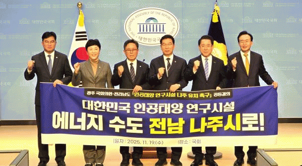 ±¤ÁÖ¡¤Àü³² ±¹È¸ÀÇ¿øµéÀº À̳¯ °øµ¿°áÀǹ®¿¡¼ ¡°³ªÁÖ´Â ¾ÈÁ¤Àû ºÎÁö ¿©°Ç, ¿ì¼öÇÑ Á¤ÁÖȯ°æ, Çѱ¹Àü·Â¡¤Çѱ¹¿¡³ÊÁö°ø´ë µî ¼¼°èÀû ¿¡³ÊÁö ÀÎÇÁ¶ó°¡ ÁýÀûµÈ ÀΰøÅÂ¾ç ¿¬±¸½Ã¼³ÀÇ ÃÖÀûÁö¡±¶ó°í °Á¶Çß´Ù.