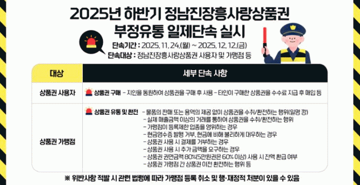 2025³â ÀåÈﱺÀº ¼ÒºñÃËÁø ¹× Áö¿ª»ç¶û»óǰ±Ç Ȱ¼ºÈ¸¦ À§ÇØ 'ÀåÈﱺ Á¤³²ÁøÀåÈï»ç¶û »óǰ±Ç °ü¸® ¹× ¿î¿µ Á¶·Ê' °³Á¤À» ÅëÇØ ±¸¸ÅÇѵµ¸¦ ±âÁ¸ 50¸¸¿ø¿¡¼ 70¸¸¿øÀ¸·Î »óÇâ, 5% »çÈÄ Ä³½Ã¹é À̺¥Æ® ÃßÁø µî ´Ù¾çÇÑ Á¤Ã¥À» ÃßÁøÇϰí ÀÖ´Ù.