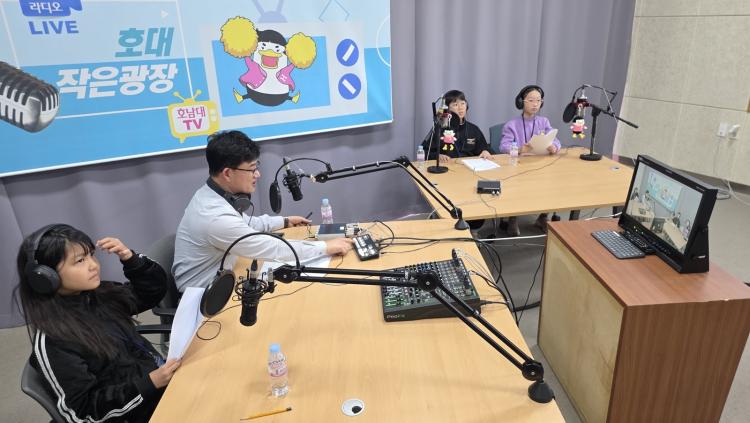 2009³â ¼³¸³µÈ È£³²´ë ÅëÇÕ´º½º¼¾ÅÍ´Â Àü±¹ ´ëÇÐ ÃÖÃÊÀÇ ¹Ìµð¾î ½Ç½À ±³À° °ø°£À¸·Î ¹æ¼Û ½ºÆ©µð¿À, ÁÖÁ¶Á¤½Ç, º¸ÀÌ´Â ¶óµð¿À½Ç µî ½ÇÁ¦ ¹æ¼Û ȯ°æÀ» °®Ãá ¹Ìµð¾î Àü¹® ±³À°½Ã¼³ÀÌ´Ù.