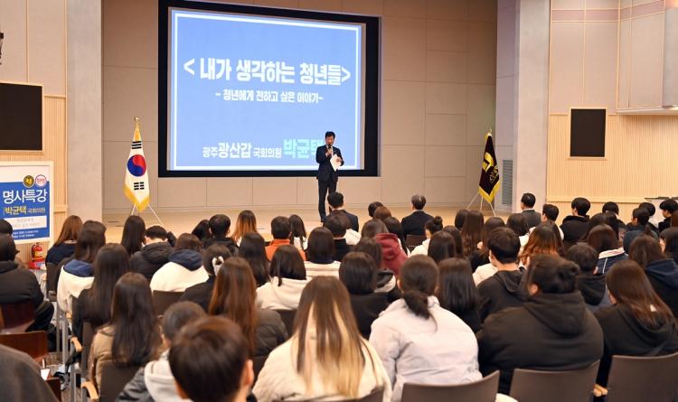 ¹Ú±ÕÅà ÀÇ¿øÀº ¸¶Áö¸·À¸·Î °ú°Å·ÎºÎÅÍ ÁöÇý¸¦ ¹è¿ï ¼ö ÀÖ´Â »ç¸¶ÃµÀÇ ¡®»ç±â(ÞÈÑÀ)¡¯¿Í 2050³â±îÁöÀÇ ¹Ì·¡ ¿¹ÃøÀ» ´ãÀº ¹Ì·¡¿¹Ãø¼ ¡®¼¼°è¹Ì·¡º¸°í¼¡¯¸¦ Çлýµé¿¡°Ô Ãßõµµ¼·Î ±ÇÇÏ¸é¼ ¡°Ã»³â Çлý ¿©·¯ºÐµéÀÌ Á¶±Ý¸¸ ´õ ³ë·ÂÇØÁØ´Ù¸é ±â¼º¼¼´ë¸¦ ´É°¡ÇÒ ¼ö ÀÖ°í, ¹ßÀüµÈ ¹Ì·¡¸¦ ¿¾î°¥ ¼ö ÀÖÀ¸¸®¶ó È®½ÅÇÑ´Ù¡±¸ç Âü¼® ÇлýµéÀ» °Ý·ÁÇß´Ù.