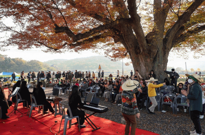 Ãß¼ö¸¦ ¸¶Ä£ µéÆÇ¿¡ ¿ì¶Ò ¼ ÀÖ´Â 800³â ³Ñ´Â º¸È£¼ö ´ÀƼ³ª¹« ¾Æ·¡¼ ÆîÃÄÁø ÀÌ À½¾Çȸ¿¡´Â ¸¶À»Áֹΰú °ü±¤°´ µî 400¿© ¸íÀÌ ÇÔ²² ÇØ ´Ê°¡À»ÀÇ Á¤Ãë¿¡ Èì»¶ ºüÁ³´Ù.