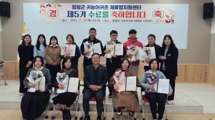ÇÔÆò±ºÀº 30ÀÏ ¡°ÇÔÆò±º ±Í³ó¾î±ÍÃÌ Ã¼·ùÇü Áö¿ø¼¾ÅÍ Á¦5±â ¼ö·á½ÄÀÌ Áö³ 27ÀÏ ±³À°»ý°ú °¡Á· µî 20¿© ¸íÀÌ Âü¼®ÇÑ °¡¿îµ¥ ¼ºÈ²¸®¿¡ ¸¶¹«¸®µÆ´Ù¡±°í ¹àÇû´Ù.