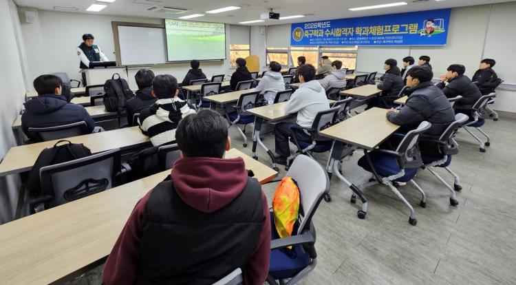 ƯÈ÷ Áø·Î¿Í Àû¼º¿¡ µû¶ó ¼±ÅÃÇÒ ¼ö ÀÖ´Â Ã౸Çаú Àü°øµ¿¾Æ¸® ¼Ò°³¿Í ¼±¹è ÀçÇлýµé°úÀÇ ´ëȸ¦ ÅëÇØ ½ÇÁ¦ Çаú »ýȰÀÇ »ý»ýÇÑ À̾߱⸦ °øÀ¯ÇßÀ¸¸ç, ÀÎÁ¶Àܵð±¸Àå¿¡¼ Á÷Á¢ Âü¿©Çغ» ½Ç½ÀÇü üÇè ÇÁ·Î±×·¥Àº Å« È£ÀÀÀ» ¾ò¾ú´Ù.