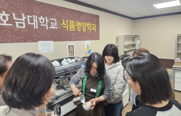 27ÀÏ ÁøÇàµÈ 1Â÷ ÇÁ·Î±×·¥¿¡¼´Â Ä¿ÇÇ ¶ó¶¼¾ÆÆ® ¹× À½·á Á¦Á¶ ½Ç½ÀÀÌ ÀÌ·ïÁ³´Ù. ¼ö½Ã ÇÕ°Ý»ý, Èĺ¸ÀÚ, ÀüÀÓ±³¿ø, ÀçÇлý ¸àÅä´Ü µî 10¿© ¸íÀÌ Âü¿©ÇØ ¿¡½ºÇÁ·¹¼Ò ¸Ó½Å »ç¿ë¹ýÀ» ÀÍÈ÷°í, ¿ìÀ¯ ½ºÆ¼¹Ö°ú ¶ó¶¼¾ÆÆ® ±âº» ±â¹ýÀ» ½Ç½ÀÇß´Ù. Âü°¡ ÇлýµéÀº ¹Ù¸®½ºÅ¸ ½Ç¹«¿¡¼ Ȱ¿ëµÇ´Â À½·á Á¦Á¶ °úÁ¤À» Á÷Á¢ üÇèÇÏ¸ç ½Äǰ¡¤À½·á ºÐ¾ßÀÇ Æø³ÐÀº Áø·Î °¡´É¼ºÀ» Ž»öÇÏ´Â ½Ã°£À» °¡Á³´Ù.