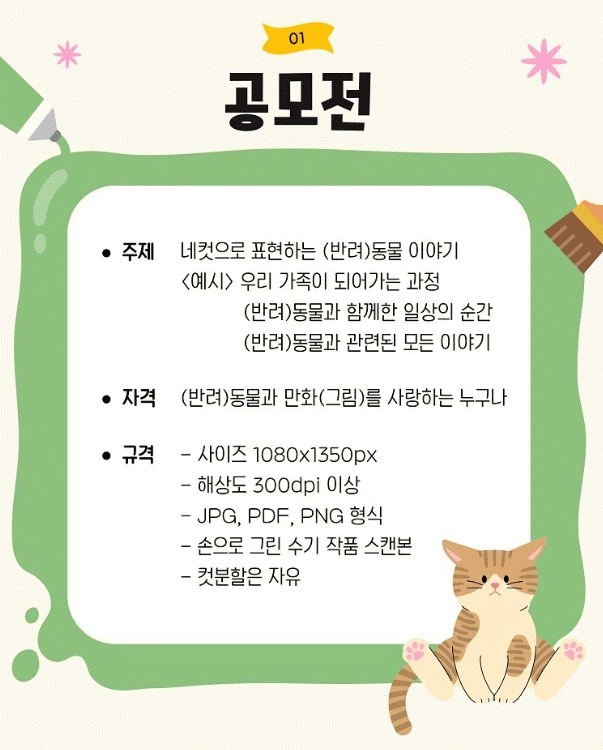 À̹ø °ø¸ðÀüÀº µ¿¹°°ú ¸¸È(±×¸²)¿¡ °ü½É ÀÖ´Â ´©±¸³ª Âü¿©ÇÒ ¼ö ÀÖÀ¸¸ç, ¹Ý·Áµ¿¹°°ú Àϻ󿡼 °Þ´Â Àç¹ÌÀÖ°í µûµíÇÑ ¼ø°£À» ³×ÄÆ¸¸È·Î Ç¥ÇöÇÏ¸é µÈ´Ù.