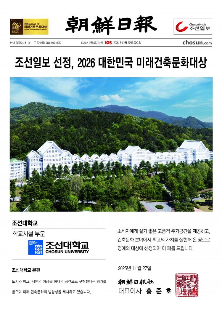 Á¶¼±´ëÇб³´Â ¡°À̹ø ¼ö»óÀº º»°üÀÌ Áö´Ñ ¿ª»ç¡¤°ÇÃࡤ¹®ÈÀû °¡Ä¡¸¦ ´Ù½Ã È®ÀÎÇÑ °á°ú¡±¶ó¸ç, ¡°¾ÕÀ¸·Îµµ ¹Î¸³´ëÇÐÀÇ Á¤½ÅÀ» °è½ÂÇÏ°í °ÇÃ๮ÈÀ¯»êÀ¸·Î¼ÀÇ °¡Ä¡¸¦ ³Î¸® È®»êÇØ ³ª°¡°Ú´Ù¡±°í ¹àÇû´Ù.