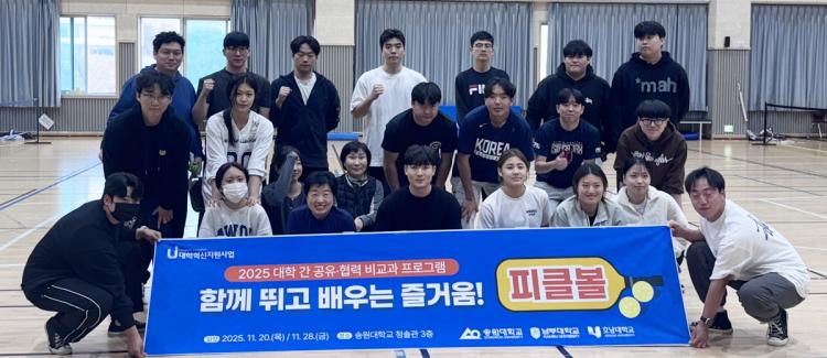 [ÅåÅå´º½º]È£³²´ëÇб³ ºñ±³°úÅëÇÕÁö¿ø¼¾ÅÍ(¼¾ÅÍÀå ÁÂÇö¼÷)´Â 11¿ù 20Àϰú 28ÀÏ µÎÂ÷·Ê¿¡ °ÉÃÄ ¼Û¿ø´ëÇб³ û¼Ö°ü ½Ç³»Ã¼À°°ü¿¡¼ ³²ºÎ´ë, ¼Û¿ø´ë Çлýµé°ú ÇÔ²² ´º½ºÆ÷Ã÷ 'ÇÇŬº¼(Pickleball)' ÇÁ·Î±×·¥À» ÁøÇàÇß´Ù. º» ÇÁ·Î±×·¥Àº Áö¿ª ´ëÇÐ °£ ºñ±³°ú Çù·Â Ȱ¼ºÈÀÇ ÀÏȯÀ̸ç ÇÇŬº¼ÀÇ ±âº»±â ½Àµæ°ú ½ÇÀü °æ±â ´É·Â Çâ»óÀ» ¸ñÇ¥·Î ¿î¿µµÆ´Ù.