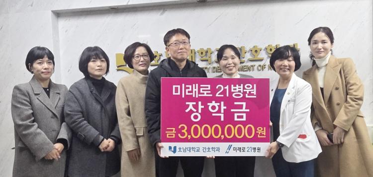 ¹ÚÁ¤¿ì ¿øÀåÀº ¡°¹Ì·¡·Î21º´¿øÀÇ ÀåÇлç¾÷ÀÌ ¿ì¼öÇÑ °£È£ ÀÎÀ縦 À°¼ºÇÏ´Â µ¥ Å« ÈûÀÌ µÇ±â¸¦ ¹Ù¶õ´Ù¡±¸ç ¡°È£³²´ëÇб³ °£È£Çаú ÇлýµéÀÌ ¼þ°íÇÑ °£È£Á¤½ÅÀ» ¹ÙÅÁÀ¸·Î ¼ºÀåÇÏ°í ¹ßÀüÇÒ ¼ö ÀÖµµ·Ï ¾ÕÀ¸·Îµµ ¸Å³â 300¸¸ ¿øÀÇ ÀåÇбÝÀ» ²ÙÁØÈ÷ ±âŹÇϰڴ١±°í ¹àÇû´Ù.